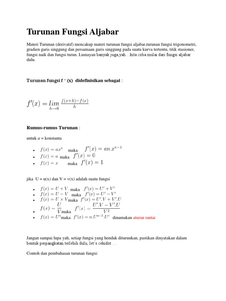 Soal Dan Pembahasan Aplikasi Turunan Fungsi Trigonometri Pdf : Turunan Fungsi Aljabar Turunan Dasar Rumus Soal Pembahasan : 20200925 penjelasan singkat tentang definisi turunan beserta contoh dan penyelesaiannya.