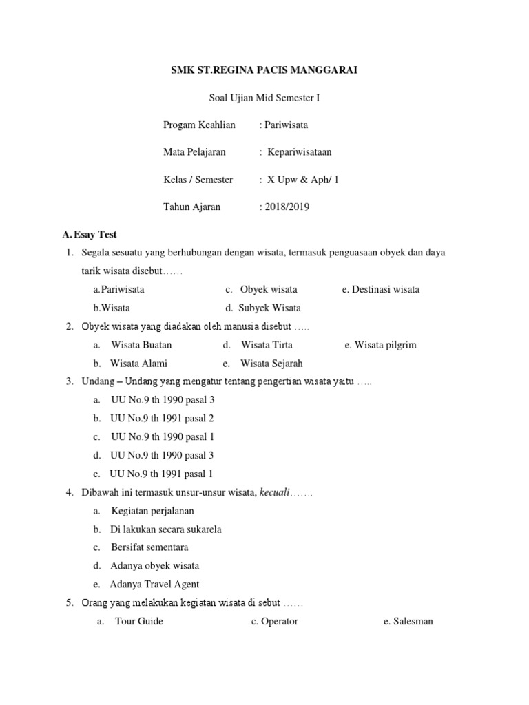 Soal Uas Pengantar Pariwisata Pdf from imgv2-2-f.scribdassets.com Maybe you would like to learn more about one of these? We did not find results for: Check spelling or type a new query.
