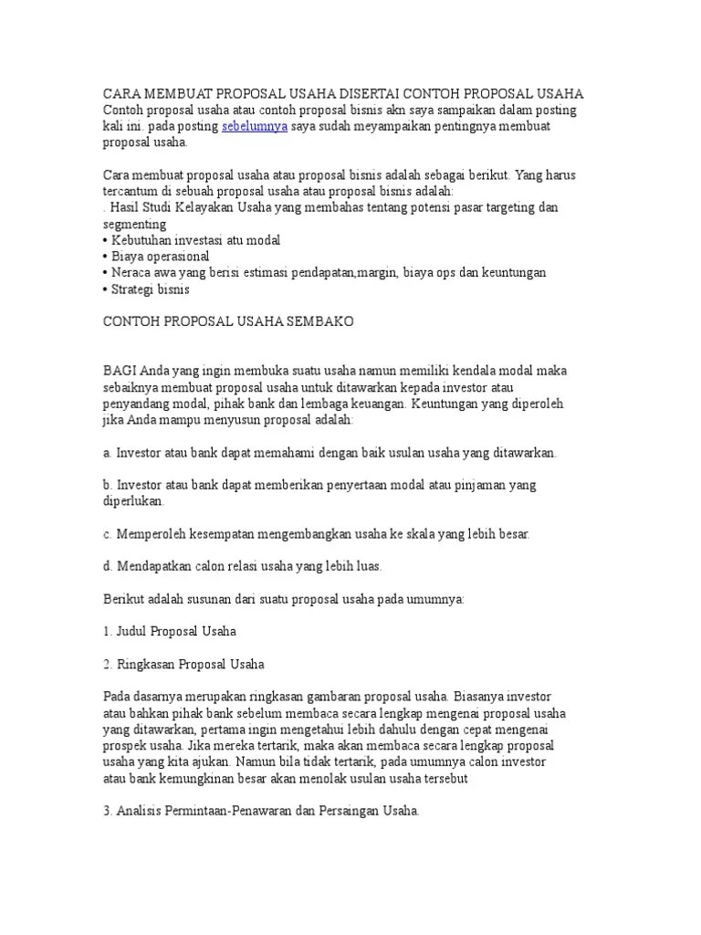 Apabila membutuhkan pinjaman modal untuk mengembangkan bisnis, proposal usaha juga akan sangat dibutuhkan ketika anda hendak meminjam modal ke bank. Contoh proposal pengajuan pinjaman modal usaha ke bank. Sebagai syarat untuk mengajukan pinjaman modal kepada pihak bank. J l a b a b i l g g wa l e t n o 7 rt 0 6 / v i , kelurahan randugunting, tegal aries sablon & Jika anda berniat untuk memulai bisnis tahun ini, ada baiknya siapkan dulu proposal usaha anda.